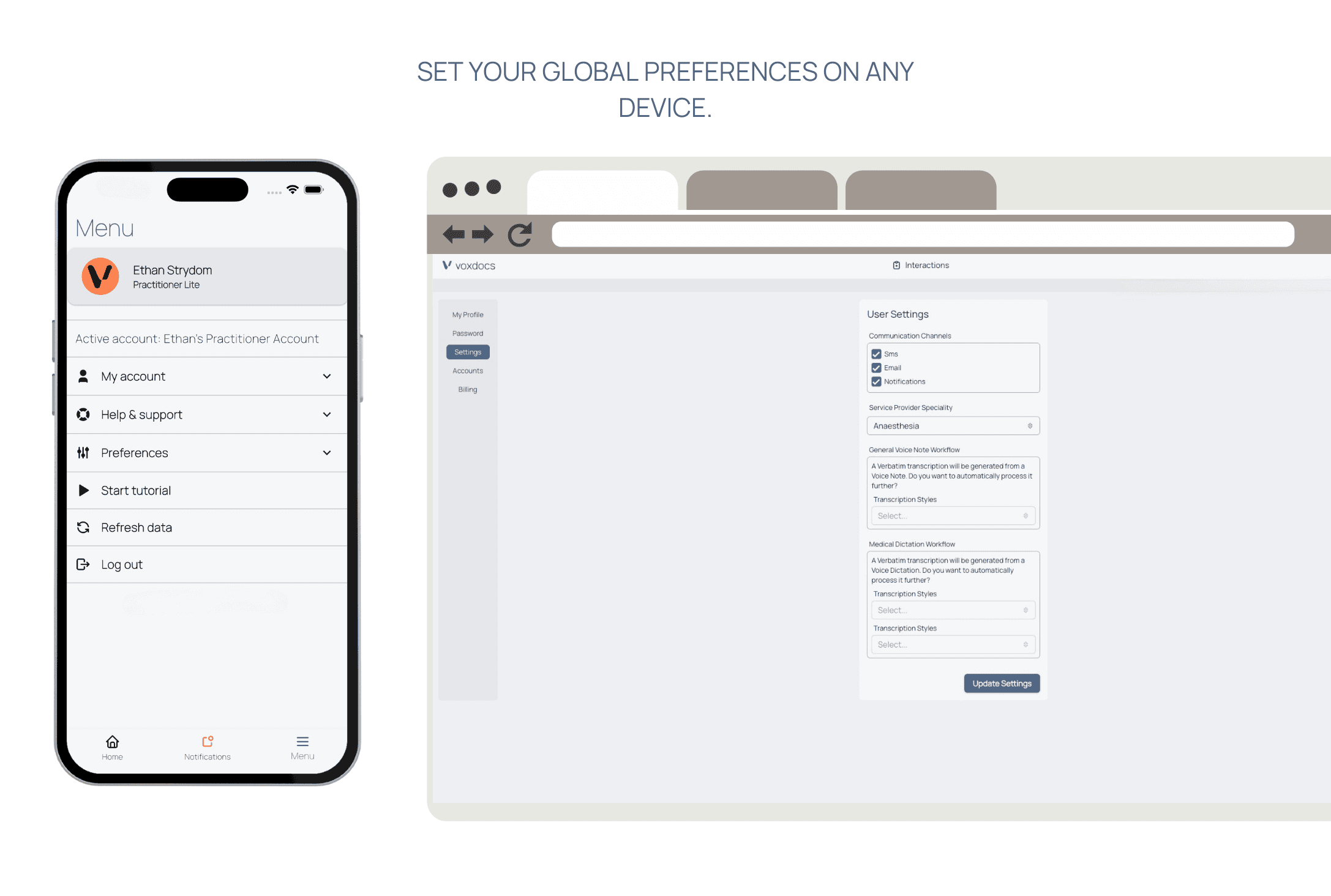 With the Practitioner Pro plan, you can invite your support team and seamlessly send documentation from the VoxDocs app or web portal. Documentation is securely routed through your workflow, with notifications keeping you informed at every step.